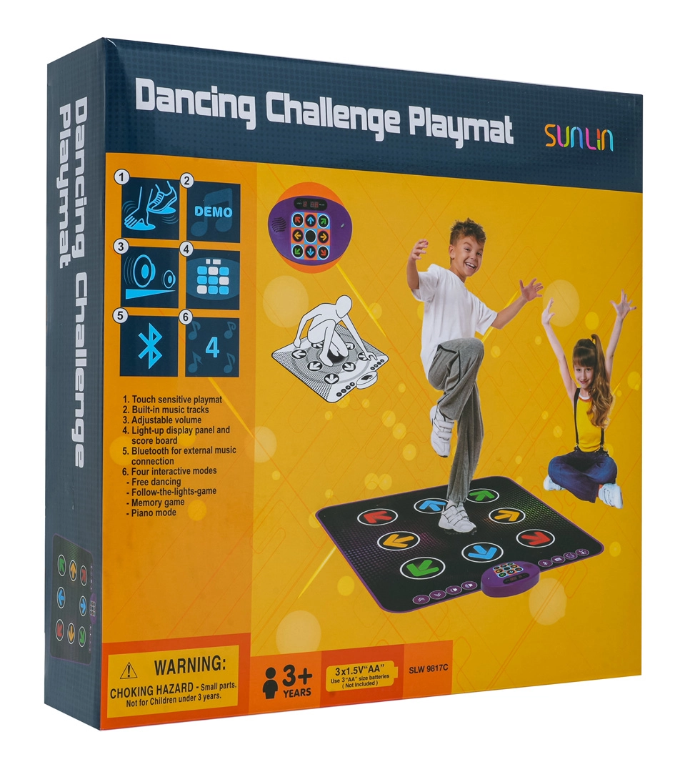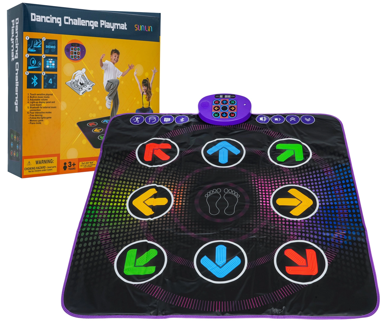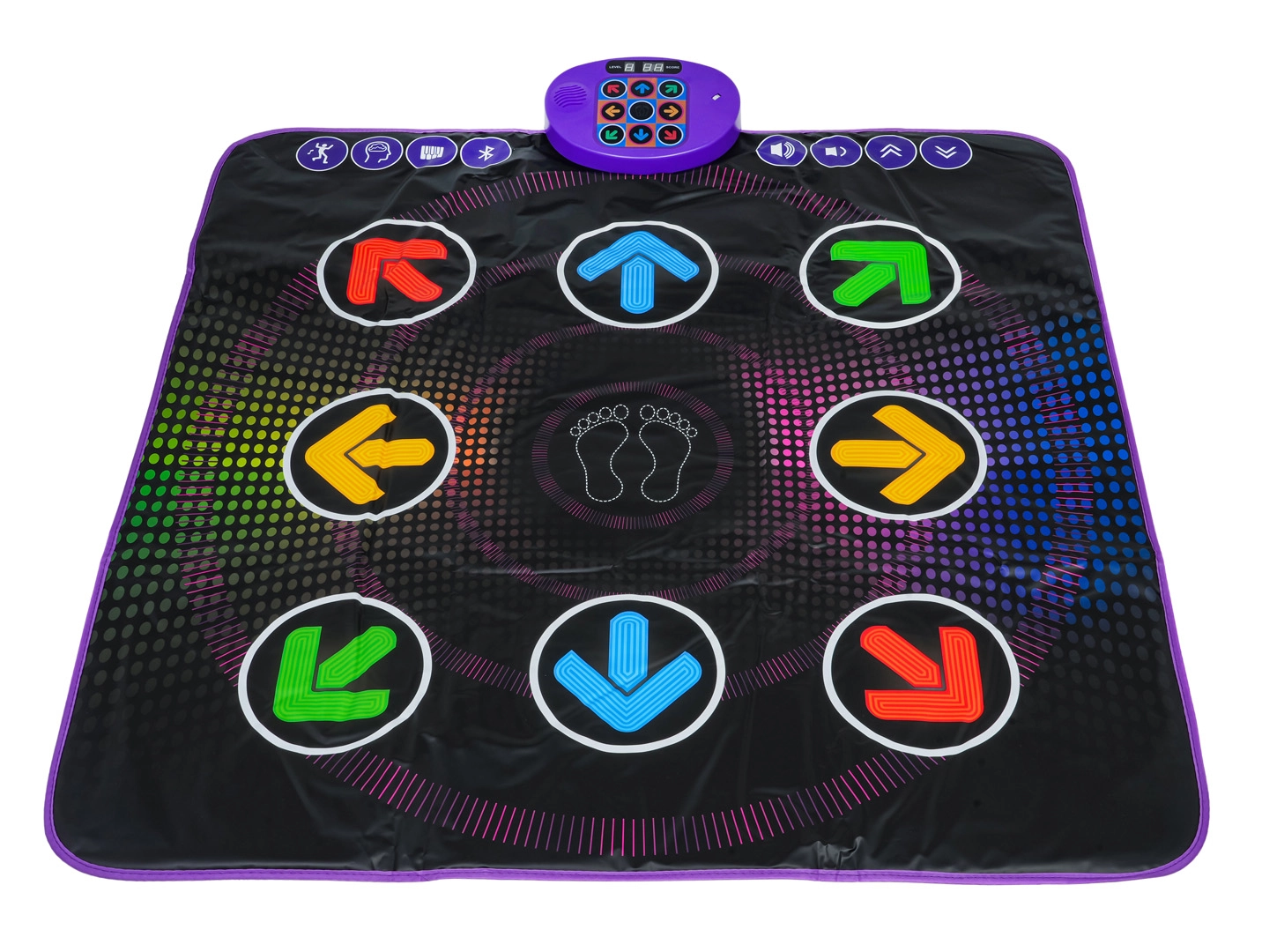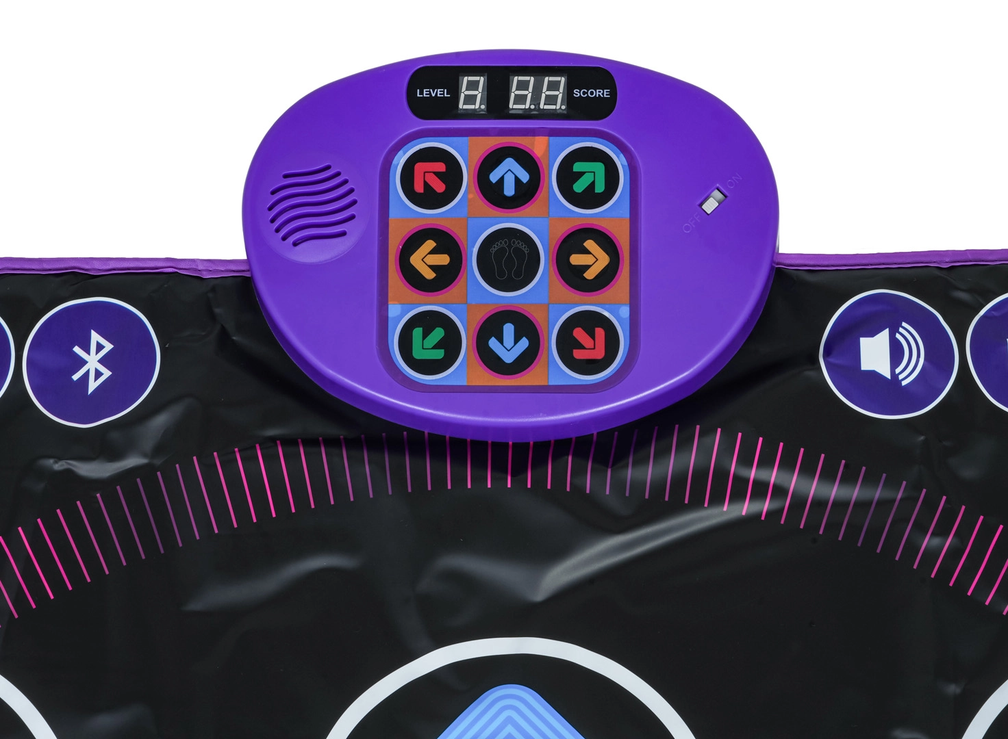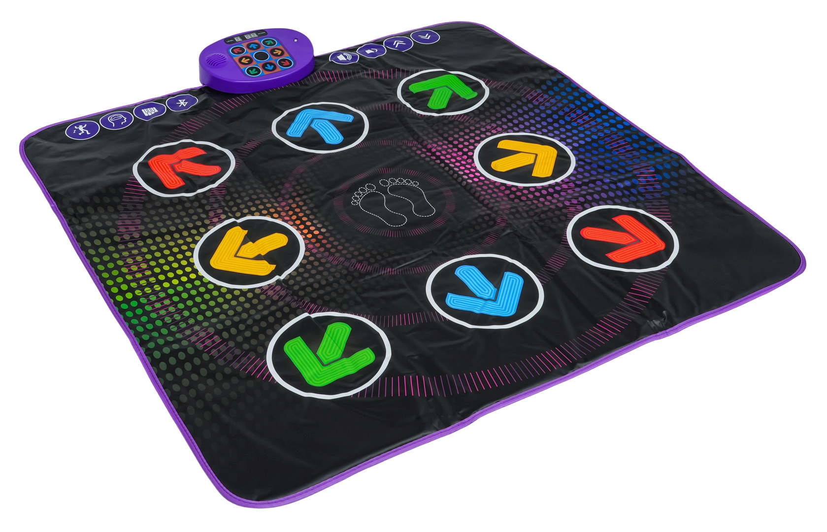Razgibajte otroke z zabavno igro! Glasbena plesna podloga z osvetljenim zaslonom s puščicami pokaže, kam stopiti, ter spodbuja k aktivnemu gibanju. Podloga je mehka, prijetna na dotik in zaradi nedrseče obdelave na spodnji strani trdno stoji na mestu. Enostavno se zloži in po igri ne zavzame veliko prostora.