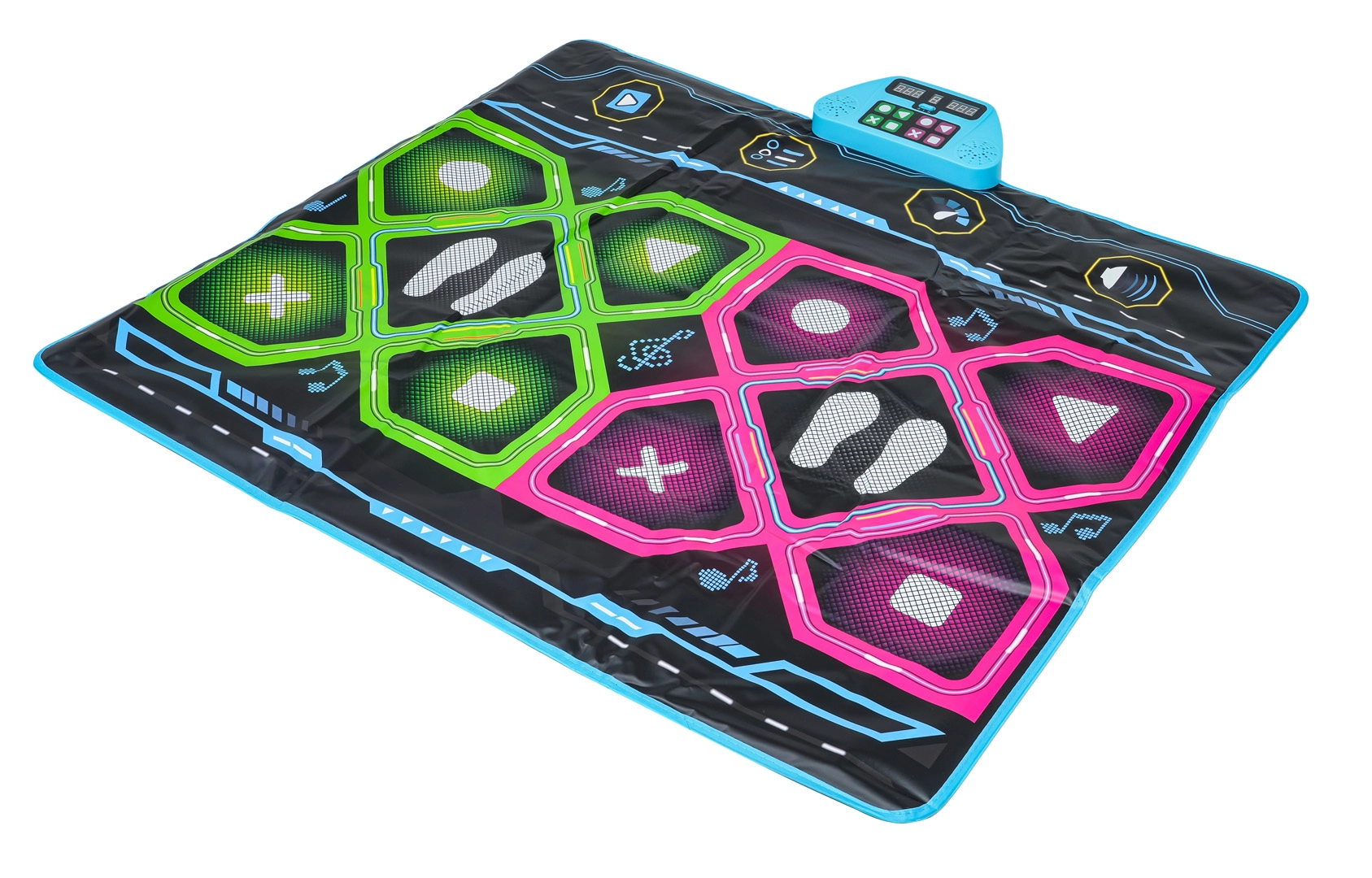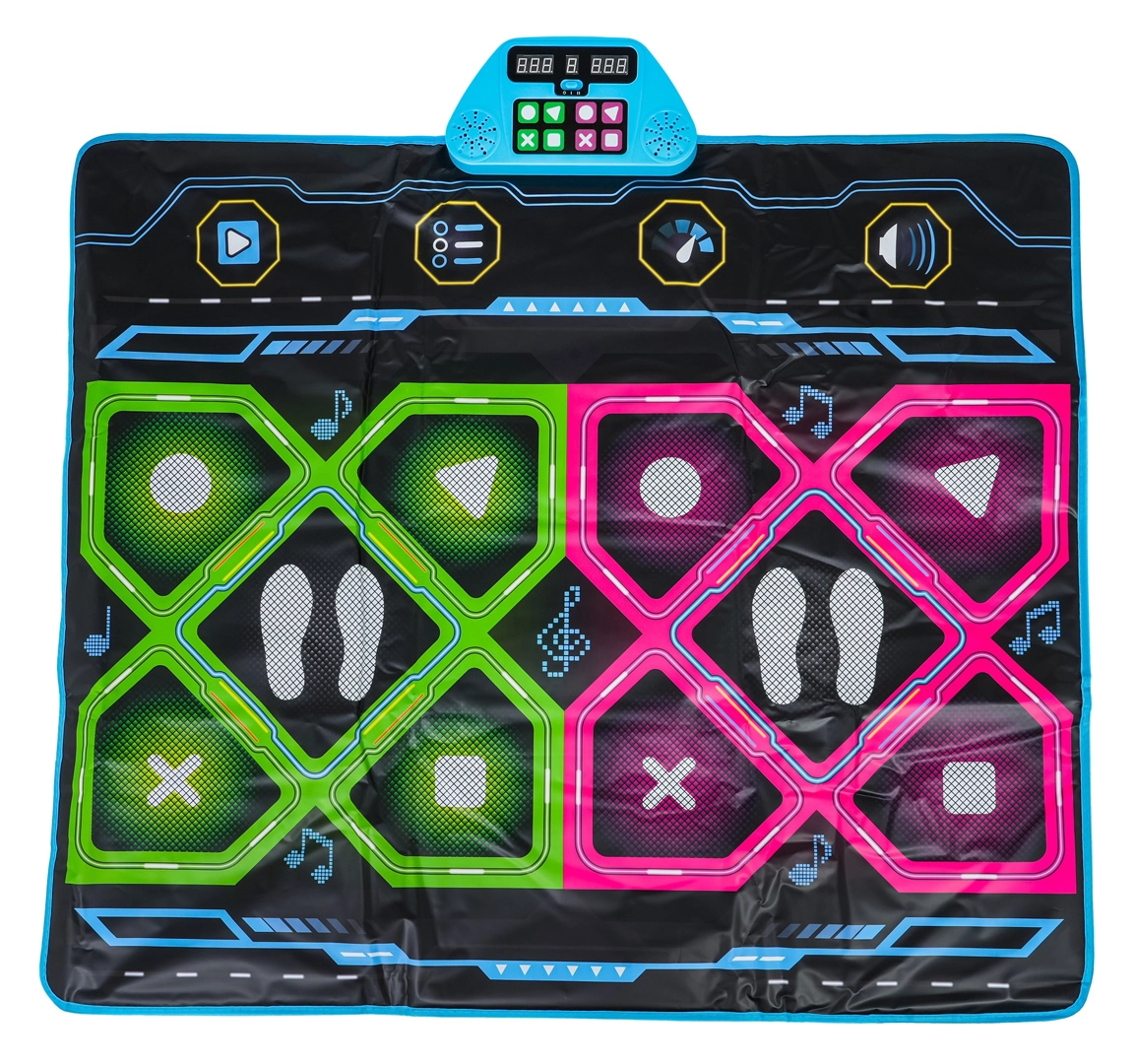 Ta dvosebna glasbena in plesna podloga bo vaš dom spremenila v zabavni plesni studio. Na prostorni plesni površini lahko hkrati plešeta dva otroka, spremljata svetlobni zaslon in se trudita zadeti na dotik občutljiva polja s simboli kroga, trikotnika, križca in kvadrata. Zaslon prikazuje točke in stopnje igre ter je dopolnjen z zvočnimi in svetlobnimi učinki.