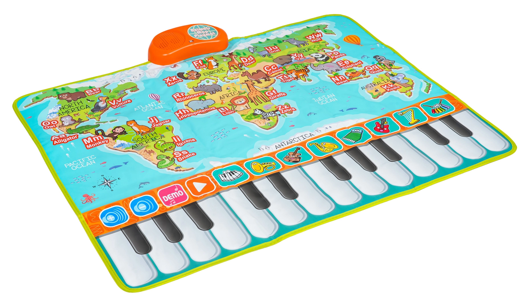Podloga je idealna za predšolske otroke, ki želijo odkrivati glasbo in svet okoli sebe. Zaradi trpežne izdelave ter jasnih ilustracij kontinentov, živali in črk je odlična izbira za učenje in zabavo doma.