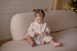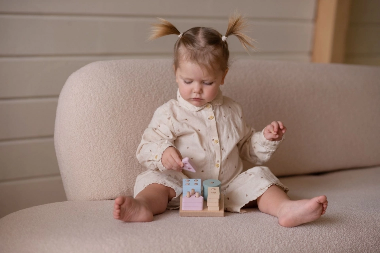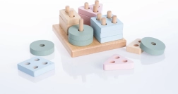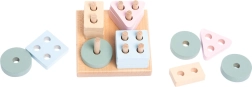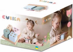 Lesena sestavljanka CUBIKA Pastelno razvrščanje oblik IV je idealen pripomoček za prve korake učenja. Otroci vstavljajo 16 perforiranih geometrijskih oblik na kvadratno osnovo ter pri tem naravno vadijo razlikovanje oblik in barv, koordinacijo oko–roka in potrpežljivost. Pastelne barve so vizualno pomirjujoče in spodbujajo igro.