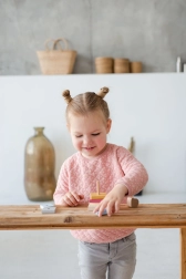 Igrača je izdelana iz trdega lesa (javor, bukev) iz trajnostnih virov in barvana z nestrupenimi vodnimi barvami brez vonja. Izpolnjuje stroge evropske varnostne standarde in je zato idealna izbira za vsakodnevno igro.