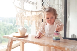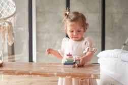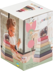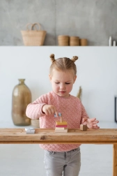 Pastelnata barvna piramida s kokoško je kakovostna lesena sestavljanka, ki otroke na zabaven način uči zlagati dele v pravilnem velikostnem in barvnem zaporedju. Z 8 natančno obdelanimi deli otroci razvijajo fino motoriko, potrpežljivost ter zaznavanje oblik in barv.