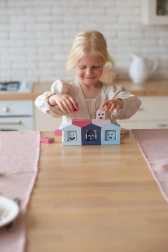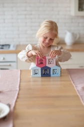 Sestavljanka Cubika Pastel barvite hišice otrokom ponuja številne možnosti za prosto igro in usmerjeno učenje. Vsaka od šestih hišic ima svojega »prebivalca« v ustrezni barvi – naloga je najti pravo kombinacijo in figurico namestiti v hišico. Tako otroci naravno urijo prepoznavanje barv, senzomotoriko in logično razmišljanje. Iz kock lahko preprosto gradijo tudi druge arhitekturne sklope ter razvijajo kreativnost in domišljijo.