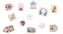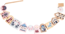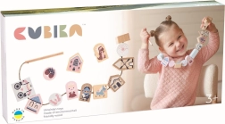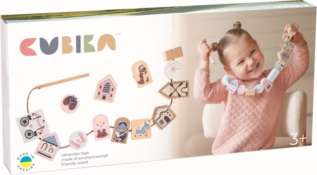 Nizanka pravljica CUBIKA Pastel je ustvarjalni set za otroke, ki radi ustvarjajo in odkrivajo. Z 12 lesenimi koščki s pravljičnimi motivi in 8 predlogami otroci vadijo spomin, koordinacijo oko–roka in zbranost. Vezalka z lesenim nastavkom olajša prepletanje in otrokom prinaša veselje ob lastnem ustvarjanju.