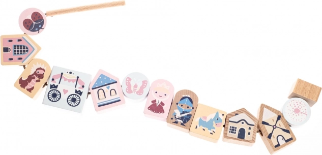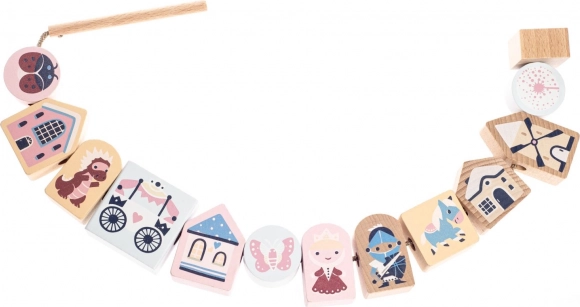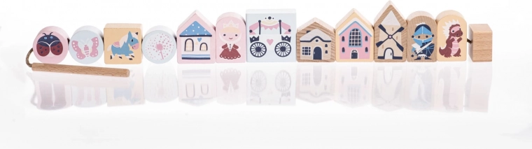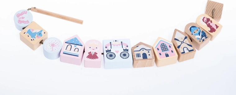 Odkrijte čaroben nizalni set v nežnih pastelnih barvah znamke CUBIKA, ki razvija fino motoriko, potrpežljivost, spomin in logično razmišljanje. Set vsebuje 12 lesenih elementov s pravljičnimi motivi, 45 cm vezalko z lesenim nastavkom in 8 predlog za zabavno nizanje. Izdelano iz kakovostnega javorja in bukve z varnimi barvami na vodni osnovi. Certifikat TÜV, standard EN 71, izdelano v Evropi.