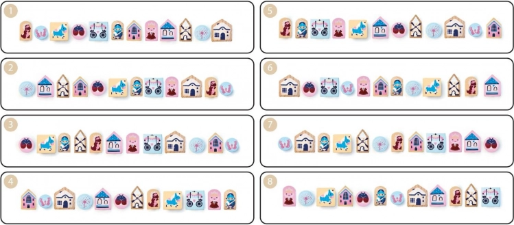 - Raznolika igra: nizanje po predlogah in po spominu – ustvarjajte lastne pravljične zgodbe.