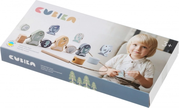 Pastelni natikankasti set Cubika z motivom rib in morskih živali je idealna didaktična igrača za otroke, ki se učijo koordinacije roke in oči. Zaradi skrbne izdelave iz trdega lesa ter prijetnih vodnih barv je igrača trpežna, varna in spodbuja k ustvarjalni igri. Otroci lahko natikajo po predlogah ali vadijo spomin in zaporedje elementov.