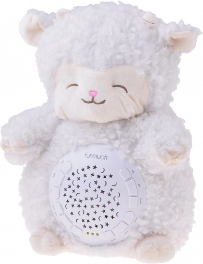 Ta mehka, prijetna ovčka ustvari v otroški sobi čarobno vzdušje za mirno uspavanje. Barvna svetlobna projekcija zvezd in lun na stene in strop skupaj z nežnimi melodijami, šumenjem morja ali dežja pomaga otroka umiriti in vzbuditi občutek varnosti.