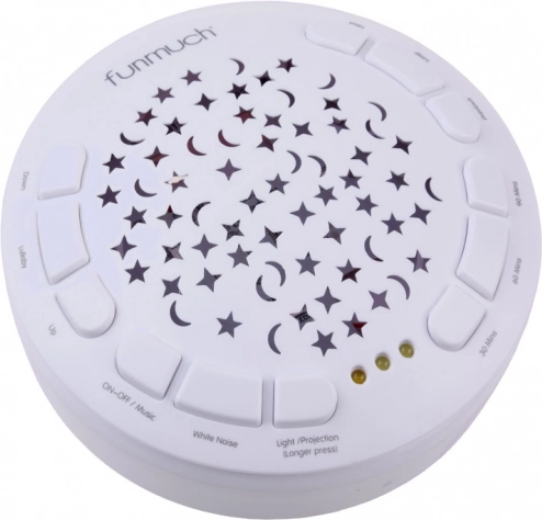 Upravljanje je preprosto in intuitivno: vklop/izklop, izbor uspavank ali white noise, uravnavanje glasnosti, preskakovanje skladb, ponavljanje (loop), izbira načina svetlobe/projekcije ter časovnik 30/60/90 minut. Učinek postopnega “ugasinjanja” in “prebujanja” svetlobe deluje na otroke zelo pomirjujoče.
