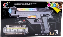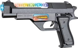 Iščete privlačno otroško pištolo, ki navduši z efekti in je hkrati varna? Ta pištola na baterije poskrbi za svetlobne učinke z barvnimi diodami ter avtentične zvoke streljanja, zaradi katerih je igra še bolj dinamična. Dovolj je pritisniti sprožilec in pustolovščina se lahko začne.