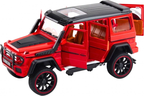 Kovinski terenski model v merilu 1:22 združuje trpežne materiale in realistično izvedbo. Rdeča karoserija, skrbni detajli in športna zasnova poudarijo vtis pravega off-roada, ki odlično izgleda doma ali na poti.