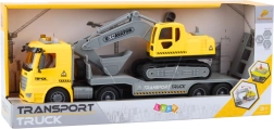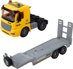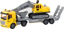 Zabaven set za male graditelje: tovornjak z odstranljivo ploščadjo in goseničnim bagrom ponuja realistične podrobnosti, utripajoče luči in zvočne učinke (motor, sirena, glasba). Izdelan iz vzdržljive plastike, razvija domišljijo, kreativnost in koordinacijo pri igri na gradbišču.
