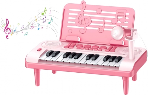 Odkrijte veselje do glasbe s tem kompaktnim otroškim klavirčkom – idealen za prve korake v svet tonov in ritmov. Ponuja 24 tipk, 8 zvokov inštrumentov, 4 ritme ter funkciji snemanja in predvajanja. Priložena sta mikrofon za karaoke in stojalo za note, zato se bo vsak mali glasbenik počutil kot na odru. Lahka zasnova iz trpežne plastike ABS in enostavno prenašanje zagotavljata zabavo doma in na poti.