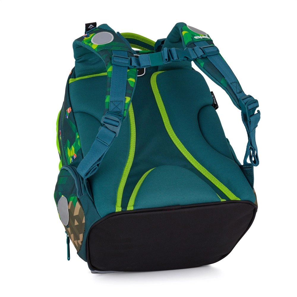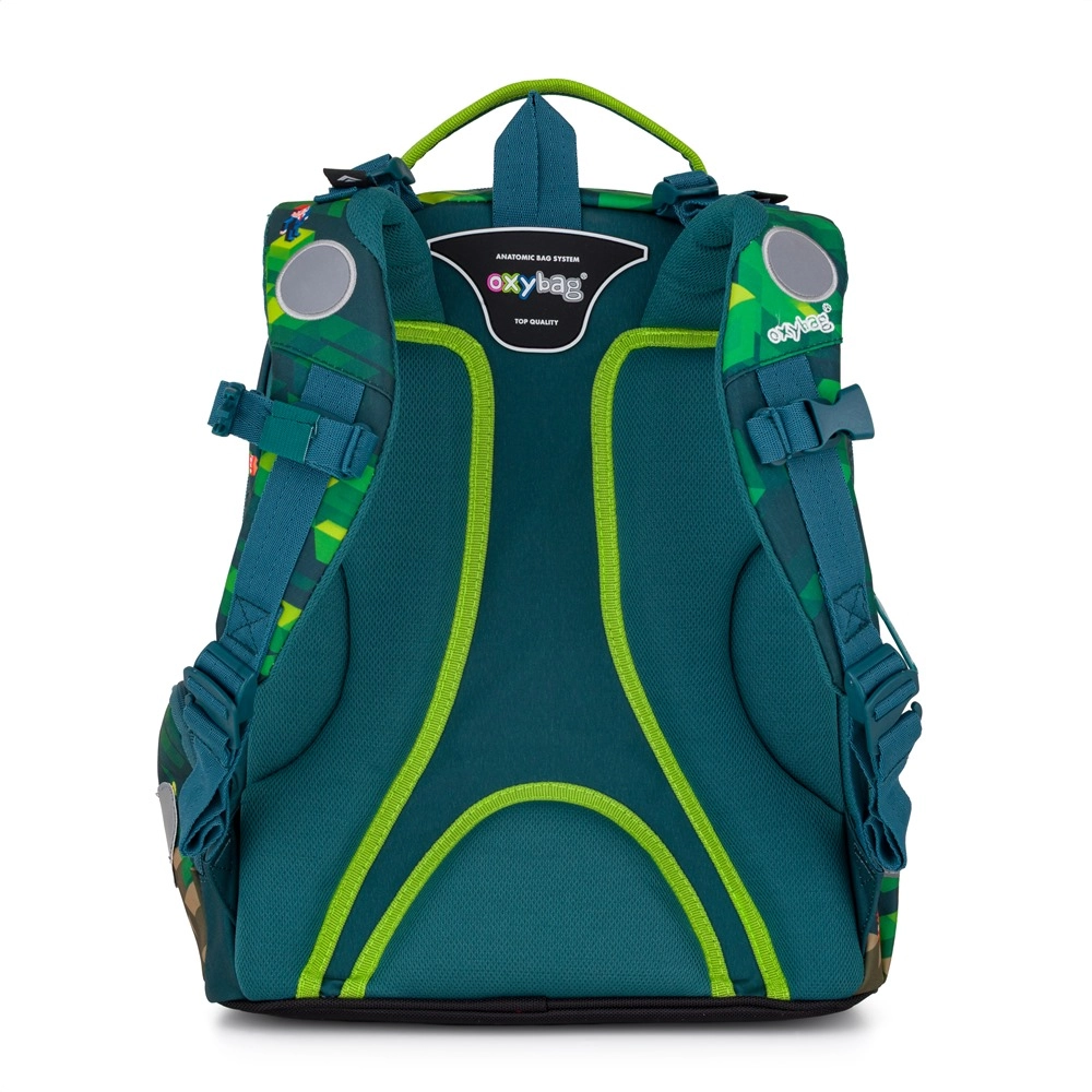 OXY GO Playworld je premišljeno zasnovan šolski nahrbtnik, ki združuje udobje, varnost in privlačen dizajn. Odlično se prilega hrbtu zaradi anatomsko oblikovanega in zračnega hrbtnega panela z dolžino 39 cm. Nastavljive naramnice dopolnjujejo dodatne zanke za pritrditev daljših koncev, tako da nič ne ovira pri hoji.