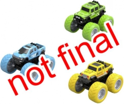 Kompakten monster truck na vztrajnik prinaša veliko zabave v majhnem paketu. Zahvaljujoč gumijastim pnevmatikam se zlahka vozi po različnih površinah in ponuja dve privlačni barvni različici – rdečo in modro. Odličen za male dirkače ali kot majhno darilo.