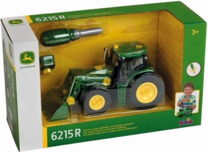 Odkrijte zabavo sestavljanja in igre z realističnim modelom traktorja John Deere 6215 R. Sestavite podvozje, namestite pnevmatike, dodajte sedež, voznikovo kabino in motorni pokrov – v hipu boste imeli pripravljen delujoč model s čelnim nakladačem.