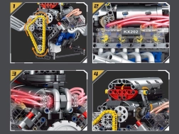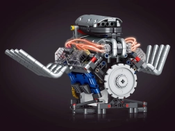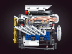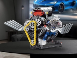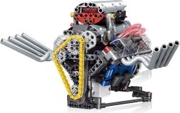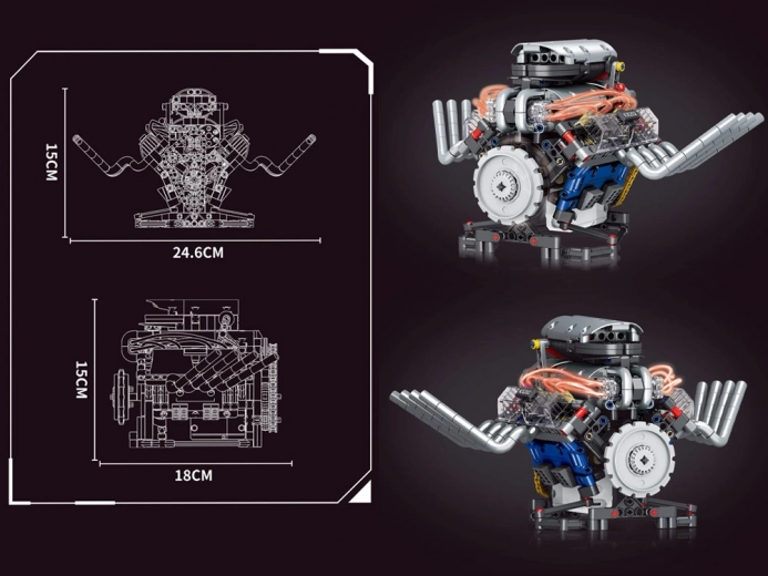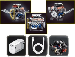 Ta tehnični komplet vas korak za korakom vodi skozi sestavljanje delujočega modela motorja z napajanjem iz akumulatorja. Zaradi premišljene konstrukcije boste v praksi videli, kako delujejo bat, zobati jermen ter vztrajnik in kako se energija prenaša v mehanizmih.