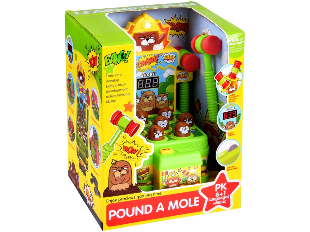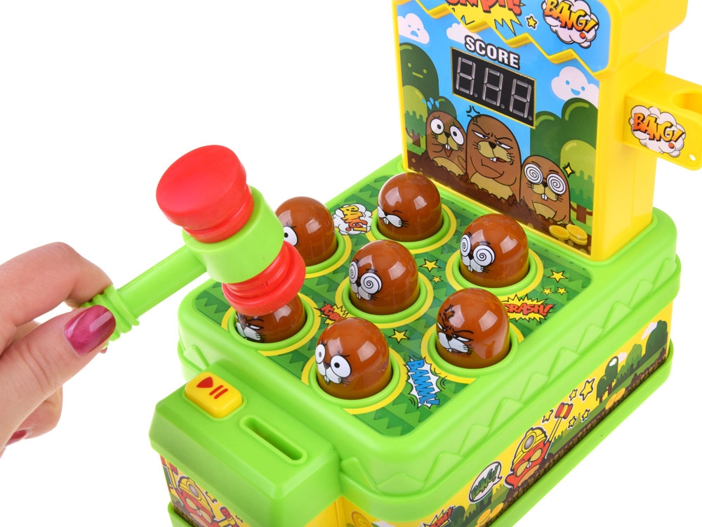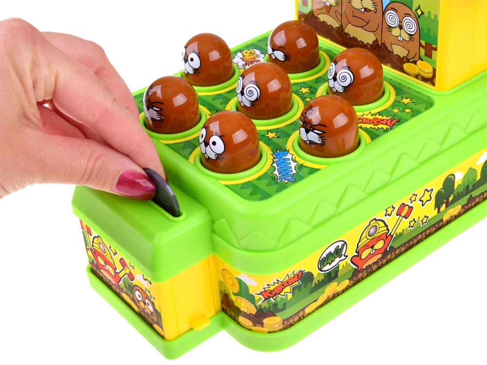 Odkrijte družinsko zabavo, ki navduši že s prvim udarcem. Na igralni površini se naključno osvetljuje 7 krtkov – vaša naloga je čim hitreje zadeti mehkim gumijastim kladivcem prav tiste, ki svetijo. Vsak zadetek prinaša točke, ki jih vidite na preglednem zaslonu. Igra razvija fino motoriko, koordinacijo in hitrost reakcij.