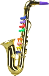 Zlati otroški saksofon je idealno prvo glasbilo za male glasbenike. Ponuja 8 barvnih tipk, preprosto upravljanje brez baterij in lahko plastično zasnovo. Podpira razvoj sluha, ritma in fine motorike ter motivira otroke k odkrivanju sveta glasbe.
