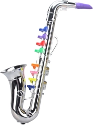 Igranje na saksofon spodbuja koordinacijo roka–oko, krepi ustvarjalnost in razvija glasbeni posluh. Odporna plastična izdelava je lahka in udobna za otroške roke, barvite tipke pa motivirajo k odkrivanju in učenju.
