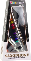 Odkrijte zabavo z otroškim saksofonom v srebrni barvi z barvnimi tipkami. Ta lahek inštrument ne potrebuje baterij, je varen, okolju prijazen in vedno pripravljen za igro. Zahvaljujoč 8 tipkam spodbuja razvoj sluha, ritmičnega občutka in finih motoričnih spretnosti.