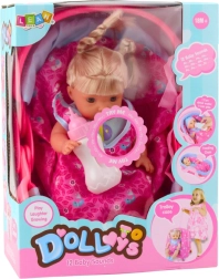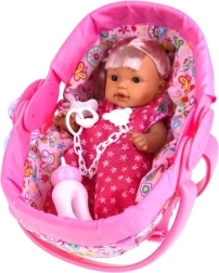 Prisrčna dojenčkova punčka v nosilki bo razveselila vsakega otroka z realističnimi funkcijami. Punčka govori in brblja (v angleščini kliče »mama« in »tata«), po pitju iz stekleničke lula, ima premične okončine in odstranljiva oblačila. Del kompleta so nosilka z odejico, steklenička in duda na verižici – popolno darilo v darilni embalaži.