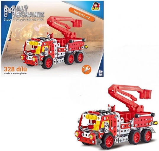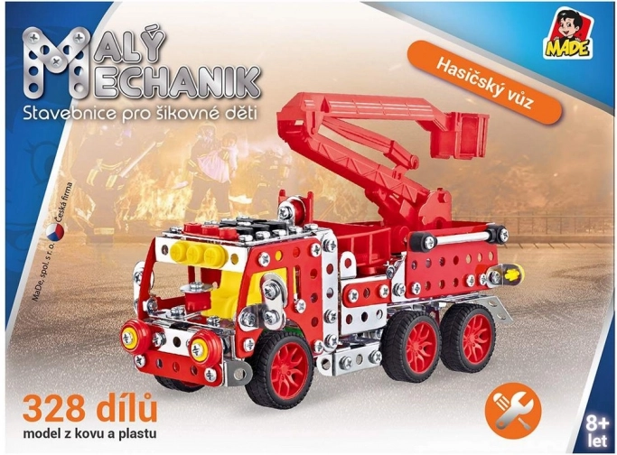 Odkrijte tehnični svet s stavebnico Mali mehanik. Iz vzdržljivih kovinskih in plastičnih delov boste sestavili podrobno gasilsko vozilo z dvižno ploščadjo, ki je idealno za male graditelje od 8 let. Sestavljanje razvija potrpežljivost, logično razmišljanje in natančnost.