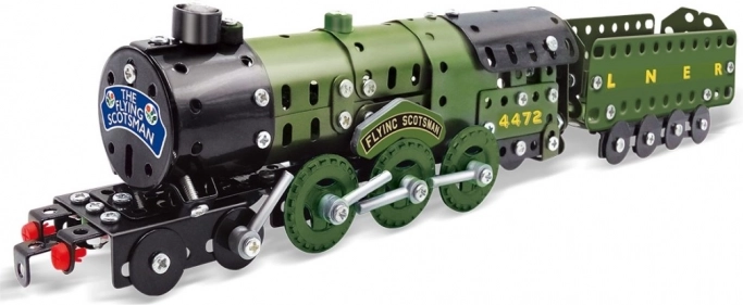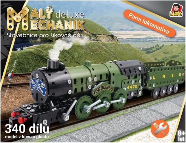 Sestavite ikonično parno lokomotivo s tenderjem in doživite veselje lastne konstrukcije. Set Mali mehanik združuje čvrste kovinske elemente z vzdržljivimi plastičnimi dodatki, povezovanje z vijaki in maticami pa nudi realističen občutek montaže. Končni model ponuja veliko zabave tudi po sestavljanju.