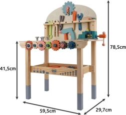 Priložen je bogat komplet orodja in pritrdilnega materiala, ki razvija fino motoriko, koordinacijo oko–roka ter logično razmišljanje. Praktična spodnja polica ponuja prostor za shranjevanje delov in dodatkov. Odlično darilo, ki bo razveselilo vsakega malega mojstra.