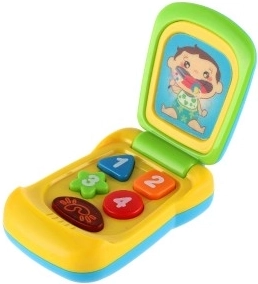 Preklopni otroški mobilni telefon je idealen prvi »mobilni« za najmlajše. Ob pritisku na barvne gumbe se oglasijo kratke, prijetne melodije, hkrati pa utripa gumb z ikono telefona. Igrača pomaga razvijati fino motoriko, domišljijo in kognitivno zaznavanje, kompaktna zasnova pa omogoča dober oprijem v majhnih rokah.