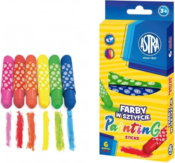 Jumbo barve v stiku Astra Baby so odlična izbira za male umetnike. Zlahka se iztisnejo, imajo gladek nanos in glede na pritisk ustvarijo bodisi učinek plakatne barve bodisi nežen videz pastelov. Primerne so za papir, karton, platno in les.