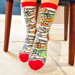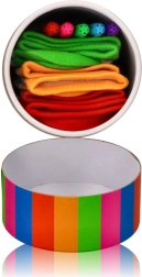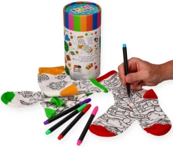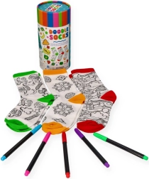 Spremenite običajne nogavice v edinstven modni dodatek. Kreativni komplet v elegantni tubi je idealen za ustvarjanje doma, kot darilo in za skupne družinske aktivnosti. Univerzalni kroj se udobno raztegne in pristaja večini otroških stopal.