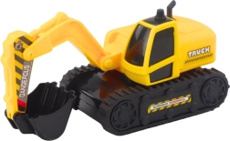 Realističen komplet tovornjaka z nizkopodnim priklopnikom in gosenčnim bagrom v merilu 1:16 ponuja ure zabave za male ljubitelje gradbenih strojev. Vozilo ima pogon Friction Power za gladek zagon, svetlobne in zvočne učinke ter priklopnik z preklopno rampo. Bager se vrti za 360°, njegovo žlico pa upravljate s stransko ročico – vse iz kakovostne, varne plastike.