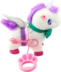 - interaktivni plišasti samorog, nadzorni povodec z gumbom, snemljiva bleščeča krila, snemljiva pentlja, originalna embalaža
