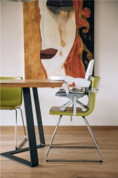 Starši bodo cenili 4-stopenjsko višinsko nastavitev za idealno poravnavo z mizo, širok sedež 36 × 30 cm za udobje otroka ter 3-točkovne pasove za varno pripenjanje. Odstranljiv pladenj olajša hranjenje in vzdrževanje. Izdelek izpolnjuje evropske varnostne standarde EN 14988 in EN 16120.