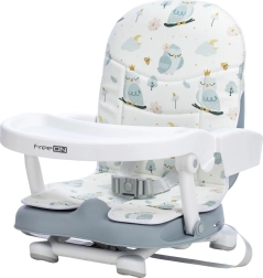 FreeON Levi Sovičke je kompakten booster za otroke, ki že znajo samostojno sedeti. S pasovi ga varno pritrdite na večino kuhinjskih stolov in otroku zagotovite udobno ter varno hranjenje doma ali na poti. Stolček je lahek, enostavno čistljiv in zasnovan za vsakodnevno uporabo.
