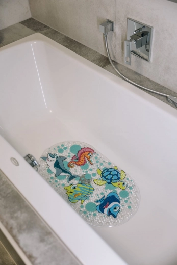 Varno in udobno kopanje za vso družino. Nedrseča podloga za kad FreeON Ocean s posebnimi priseski zagotavlja stabilnost in zaščito pred zdrsom. Izdelana je iz mehkega materiala, primerna za običajne in otroške kadi, mere 69 × 39 cm pa odlično pokrijejo potrebno površino.