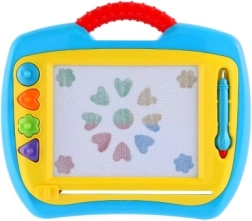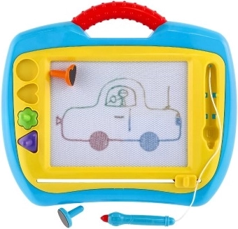Magnetna tablica je odlična alternativa papirju – otroci lahko rišejo znova in znova, brez flomastrov in brez madežev. Zahvaljujoč praktični pomični gumi/drsniku se risba preprosto izbriše in prostor je pripravljen za novo delo. Trpežna plastična izvedba z ročajem olajša prenašanje.