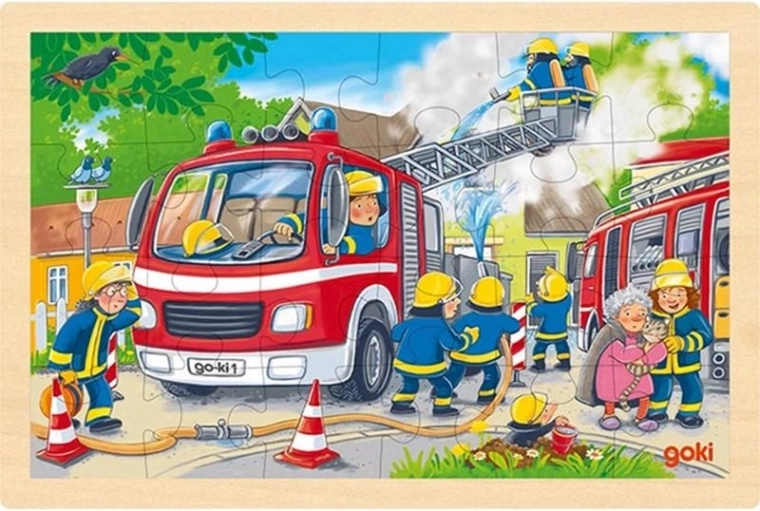 Lesena sestavljanka GOKI s temo pogumnih gasilcev prinaša otrokom zabavo in učenje hkrati. Zahvaljujoč trdnim lesenim kosom in plošči z izrezanim robom je sestavljanje enostavno in primerno za pogosto uporabo. Skrita slika pod kosi spodbuja radovednost in iz vsakega sestavljanja naredi novo odkritje.