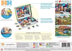 Praktična škatla s preklopnim pokrovom služi tudi kot podlaga – sestavljate kar v škatli. Na notranji strani pokrova je pregleden predogled za lažjo orientacijo. Izdelava je prijazna do narave: uporabljeni so recikliran karton in rastlinski barvni tisk. Sestavljanka je dobavljena v že sestavljenem stanju za enostaven začetek aktivnosti.
