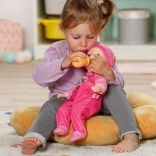 Prisrčna punčka BABY born Anna v temno rožnatem oblačilu je idealna družabnica za igro in cartanje. Ima mehko telesce za udobno crkljanje, mežikajoče oči, v paketu pa najdete stekeničko, pajacke in kapico. Odlična izbira za prvo punčko za otroke od 1. leta.