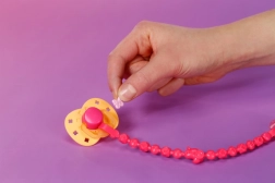 V kompletu sta steklenička in duda z verižico – idealno za igro hranjenja in pomirjanja punčke. Otroci zlahka urijo fino motoriko in negovalne veščine.