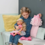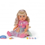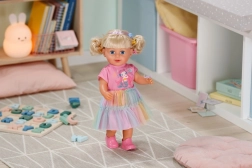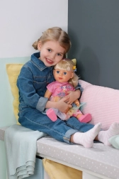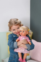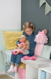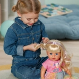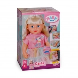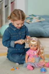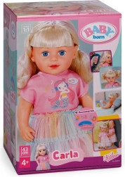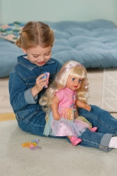 Punčka BABY born Carla otrokom prinaša veliko možnosti za ustvarjalno igro. Dolgi in mehki najlonski lasje so idealni za česanje, čopke in pletenje kitk. Set 7 dodatkov – krtača, elastike in sponke – spodbuja domišljijo pri vsakodnevnem oblikovanju.