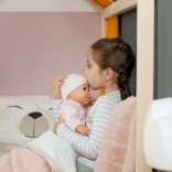 Ljubka punčka BABY born Annabell 43 cm z mehkim telescem in elektronskimi funkcijami prinaša realistične izkušnje pri skrbi za dojenčka. Zna piti iz stekleničke, reagira na dudo, odpira in zapira oči, ob premikanju rok in nog oddaja prisrčne zvoke ter jo lahko zazibate k spanju.