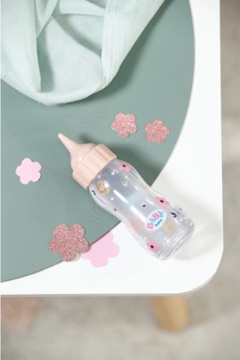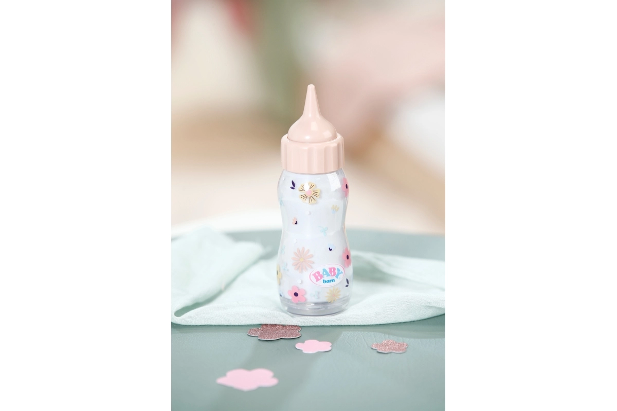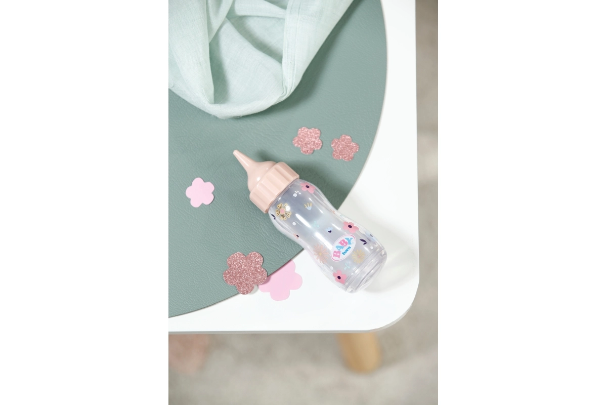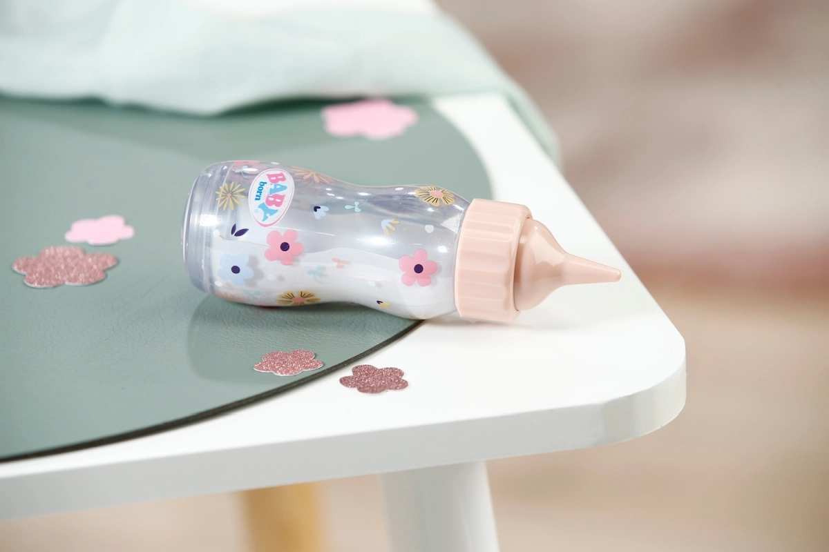 Interaktivna čarobna steklenička BABY born z učinkom izginjajoče tekočine spremeni vsak obrok punčke v zabavno in realistično izkušnjo. Med „hranjenjem“ vsebina izgine, ko stekleničko postavite nazaj v navpičen položaj, pa se ponovno napolni. Odličen dodatek za igro skrbi, posnemanje vsakdanjih situacij in razvoj domišljije. Primerno za otroke od 1. leta.