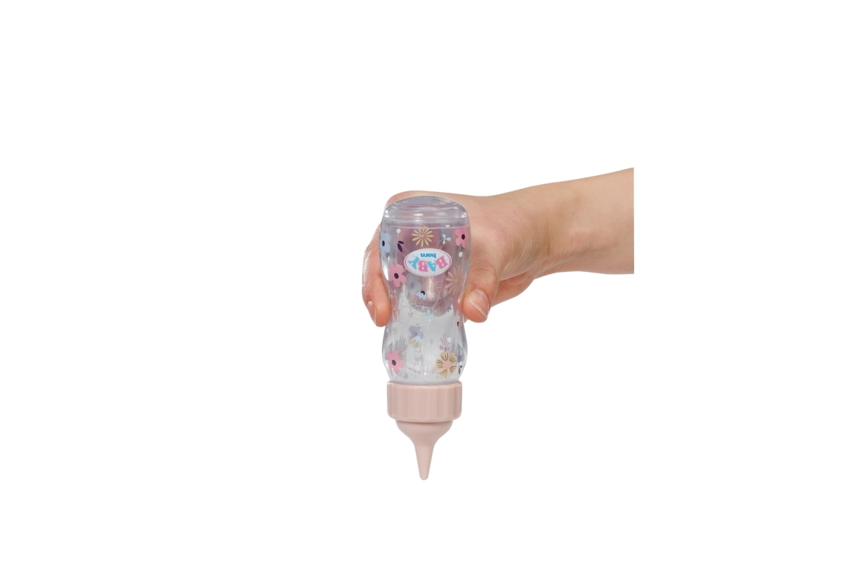 Lahka, ergonomsko oblikovana steklenička odlično sede v otroško roko, varni navojni pokrovček pa je idealen za vsakodnevno igro. Nežen pastelni dizajn z logotipom BABY born se ujema z ostalimi dodatki in spodbuja domišljijsko igro vlog.