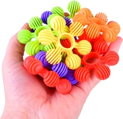Ta kreativni gradbeni set v obliki zvezdic/snežink je odlična izbira za otroke v predšolskem obdobju. Zaradi izrazitih barv in izvirne oblike kosov spodbuja vid in tip, razvija domišljijo ter pomaga spoznavati oblike in barve. Kosi se med seboj zlahka povezujejo, zato si lahko otroci zgradijo nešteto čudovitih konstrukcij.