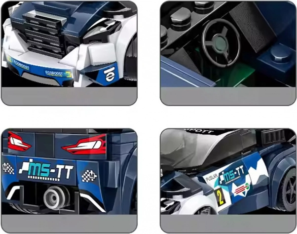 Sestavite si lasten dirkalni avtomobil iz tehničnih kock in uživajte v urah ustvarjalne zabave. Komplet vsebuje 164 natančno izdelanih delov v modro-belo-črni kombinaciji ter nalepke za športen videz. Odlično razvija ročne spretnosti, potrpežljivost in kreativnost otrok od 6 let dalje.