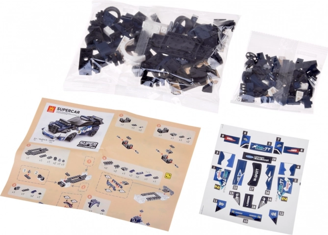Ta tehnični gradbeni komplet popelje male avtomobilske navdušence v svet hitrih vozil in pametnih mehanizmov. Z elegantno modro-belo-črno barvno kombinacijo in priloženimi nalepkami si otrok ustvari svoj športni avto z izvirnim slogom.