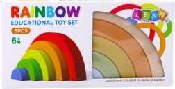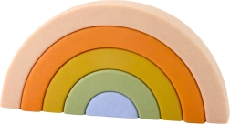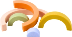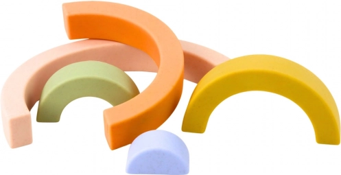 Ta pastelni mavrični komplet iz kakovostne gume bo navdušil vsakega otroka in starša. Posamezne loke različnih velikosti je mogoče zlagati, plastiti in povezovati v domiselne oblike. Mehek material je prijeten na otip in nežen do drobnih rokic, zato je idealen za prve sestave.